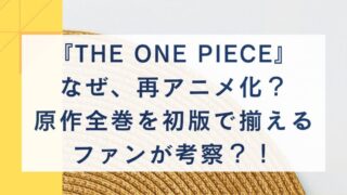 エンタメ『THE ONE PIECE』:なぜ、再アニメ化?原作全巻を初版で揃えるファンが考察?! 2023年12月17日、ジャンプフェスタ2024にて、尾田栄一郎原作の人気漫画『ONE PIECE』の再アニメ化が発表されました。 『ONE PIECE』のアニメは、1999年10月20日よりフジテレビ、東映アニメーションの製作で、放送25...エンタメ