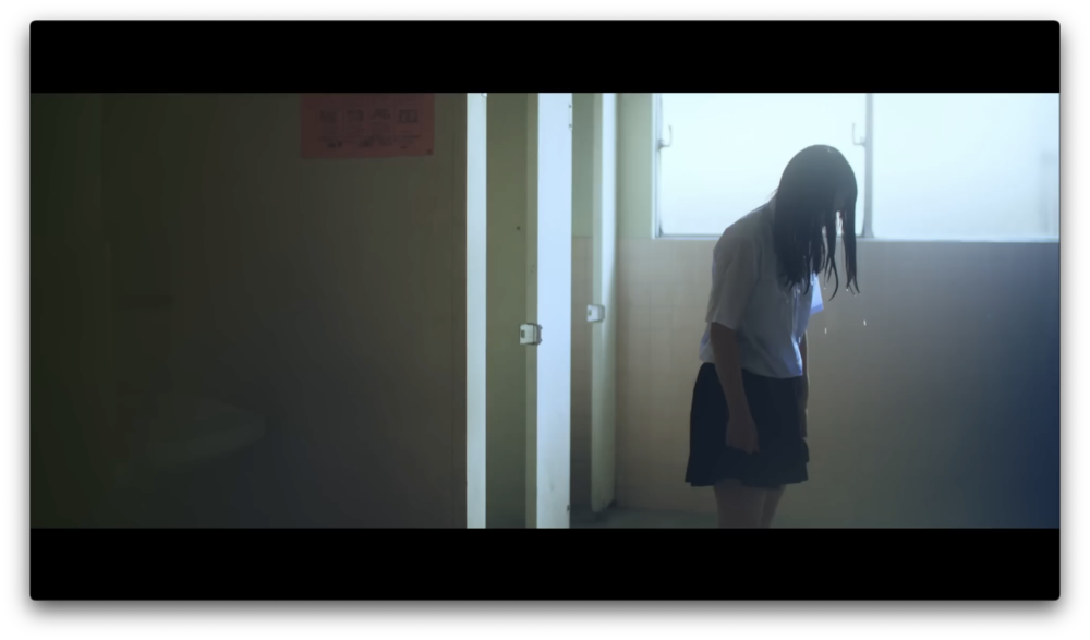 ミュージックビデオの間奏の1分41秒から始まる少年たちがホースで水遊びをするシーンの合間に水を浴びせられた少女がトイレにいるシーンがカットインされます。楽しげな少年たちに対し、陰湿ないじめを受ける少女の対比が青春時代の光と影を表現しているように思えます。